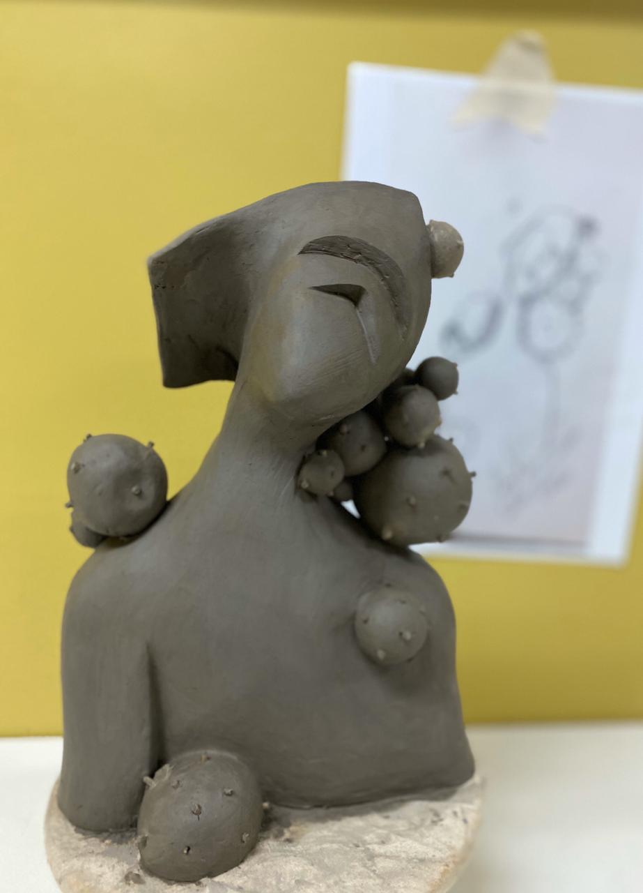 استلهمت الفنانة التشكيلية أزهار سعيد من الجائحة العالمية التي يعيشها العالم أجمع مع فيروس كورونا، وصممت مجسما بالطين للإنسان وهو محاطا بفيروس كورنا دونما إنتباه.