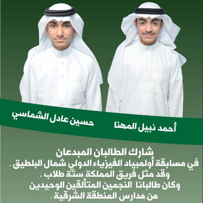 إدارة المدارس تتمنى للابنين العزيزين التوفيق ومعانقة الذهب في المسابقات القادمة.