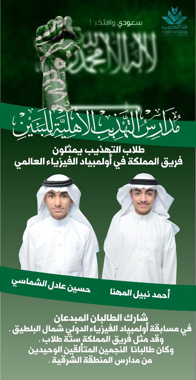 طالبا التهذيب المهنا والشماسي يمثلان المملكة في أولمبياد الفيزياء العالمي