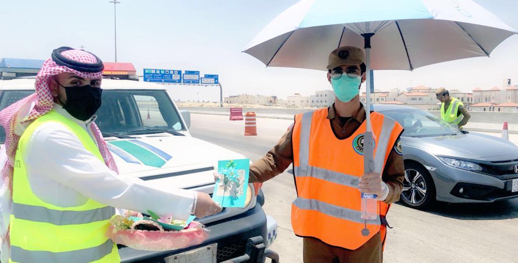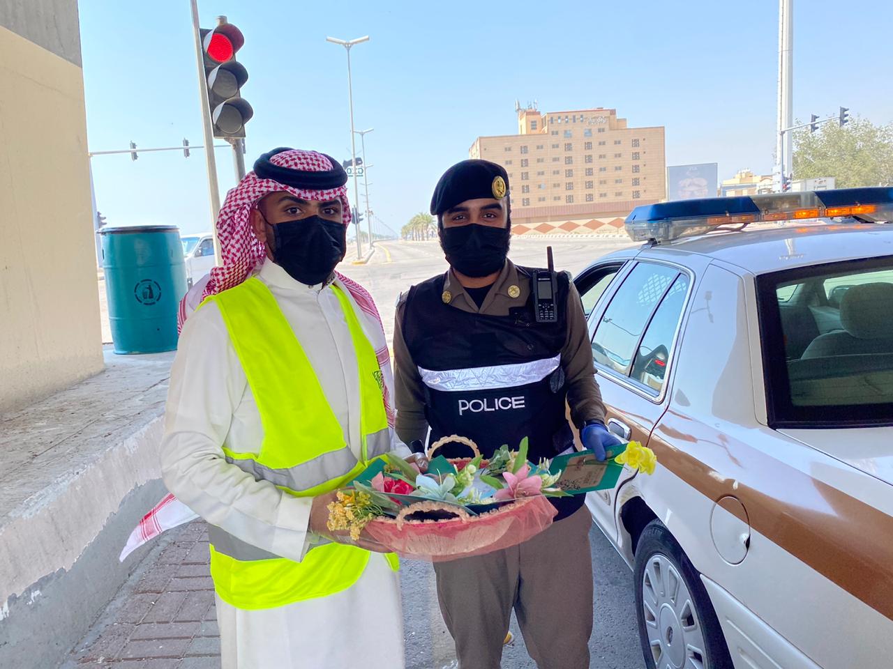 أمانة الشرقية تهنئ رجال الأمن وممرضي المحاجر بالورود وبطاقات التهنئة