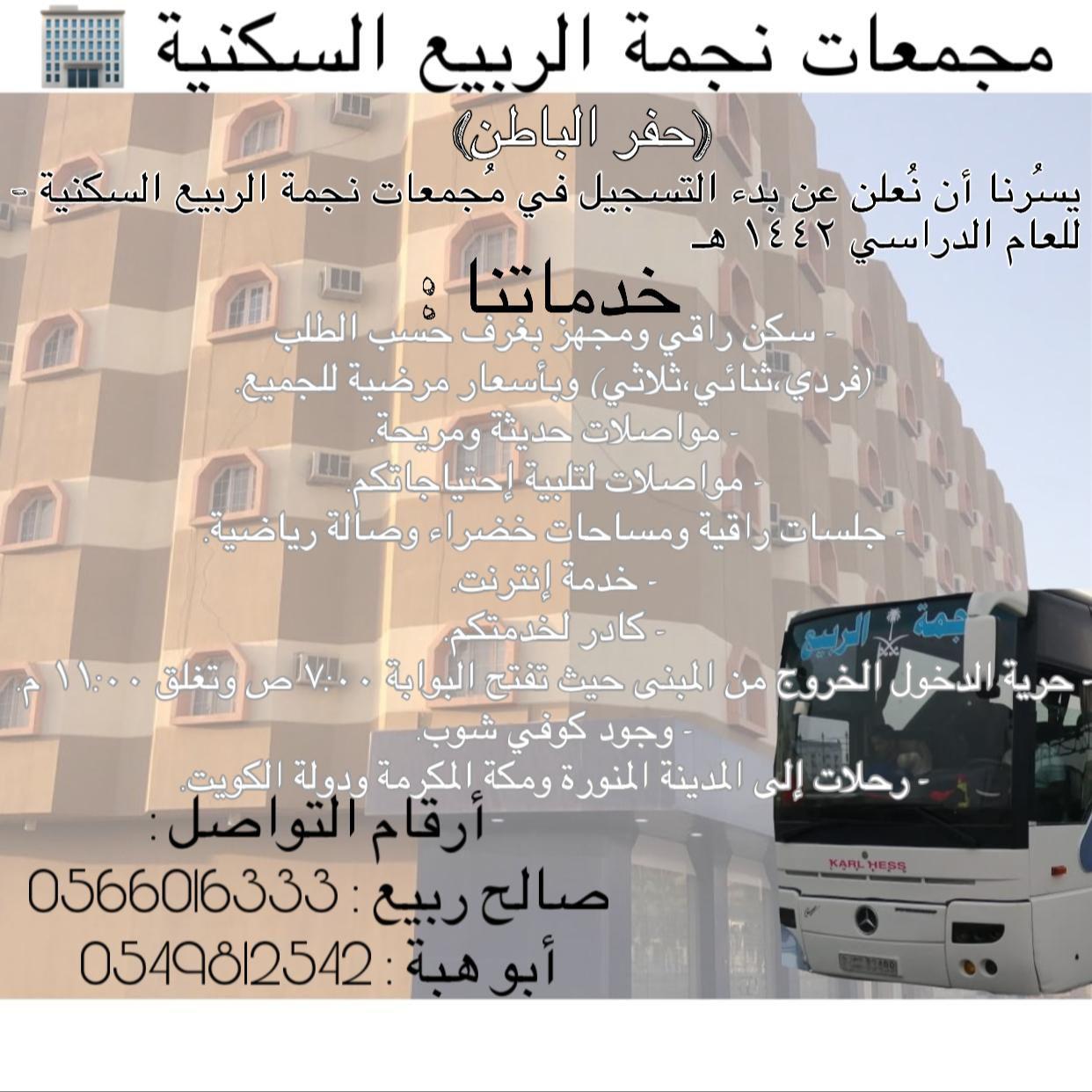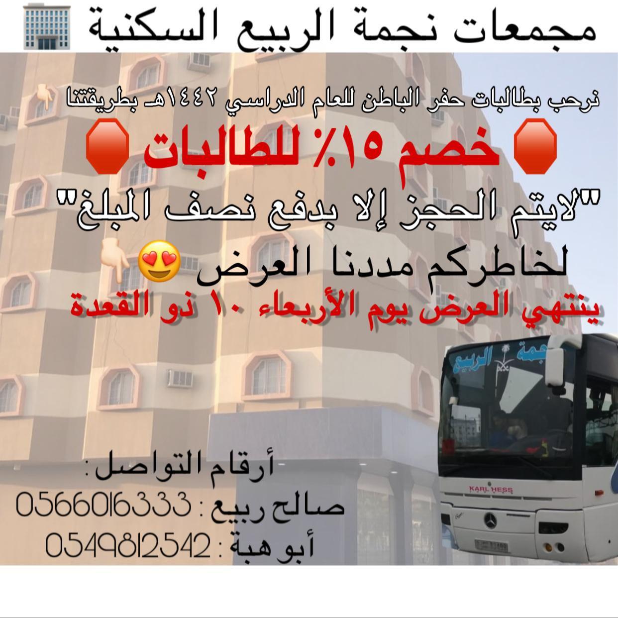بدء التسجيل في مجمعات نجمة الربيع السكنية ب حفر الباطن وخصم 15% للطالبات