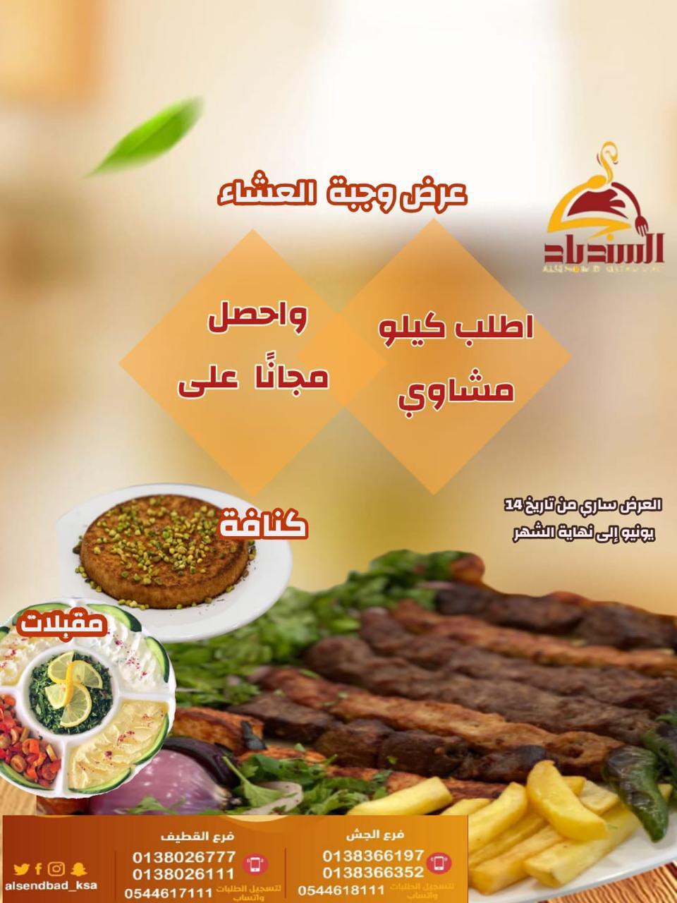 عرض الغداء والعشاء في مطعم «السندباد» غير.. لايفوتك