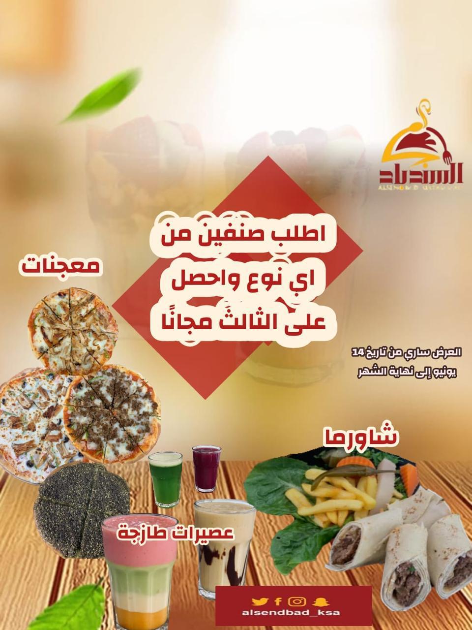 اشتر منتجين من أي نوع ”معجنات - شاورما - عصيرات “ واحصل على الثالث مجانا.