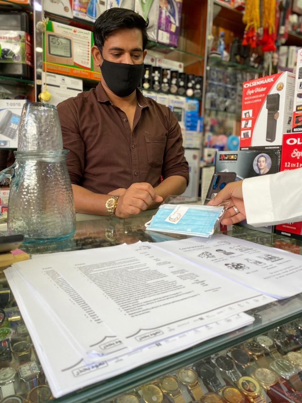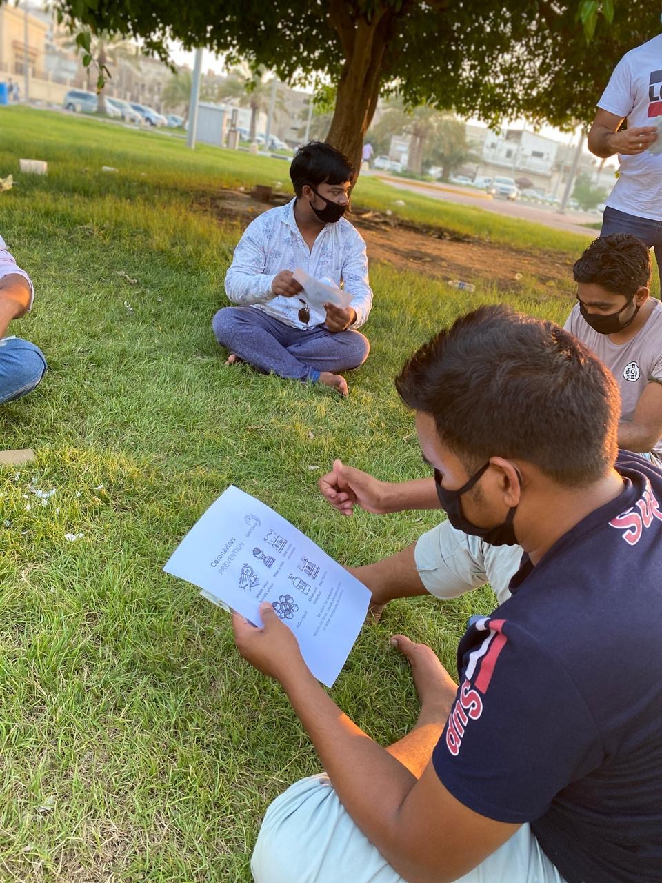 وقام فريق متطوعي الوحدة بتوزيع الكمامات ومنشورات التوعية والتباعد الصحي على المقيمين من جنسيات مختلفة، حيث تم توزيع 300 مطوية توعوية بلغات متعددة.