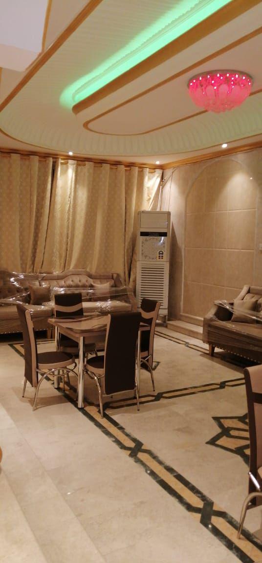 _ كل شقة تتكون من دورتين مياه وصالة ومطبخ. كمايوجد ميكرويف مع فرن مع ثلاجة كبيرة وغسالة خاصة بالشقه.