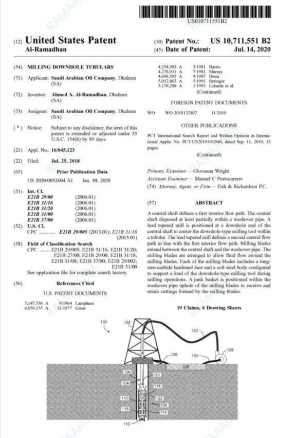 يذكر بأن للمهندس الرمضان 25 مشاركة طلب لتسجيل براءة اختراع مسجلة باسم شركة أرامكو السعودية في المكتب الأمريكي لبراءات الاختراع USPTO في مجال حفر الآبار.