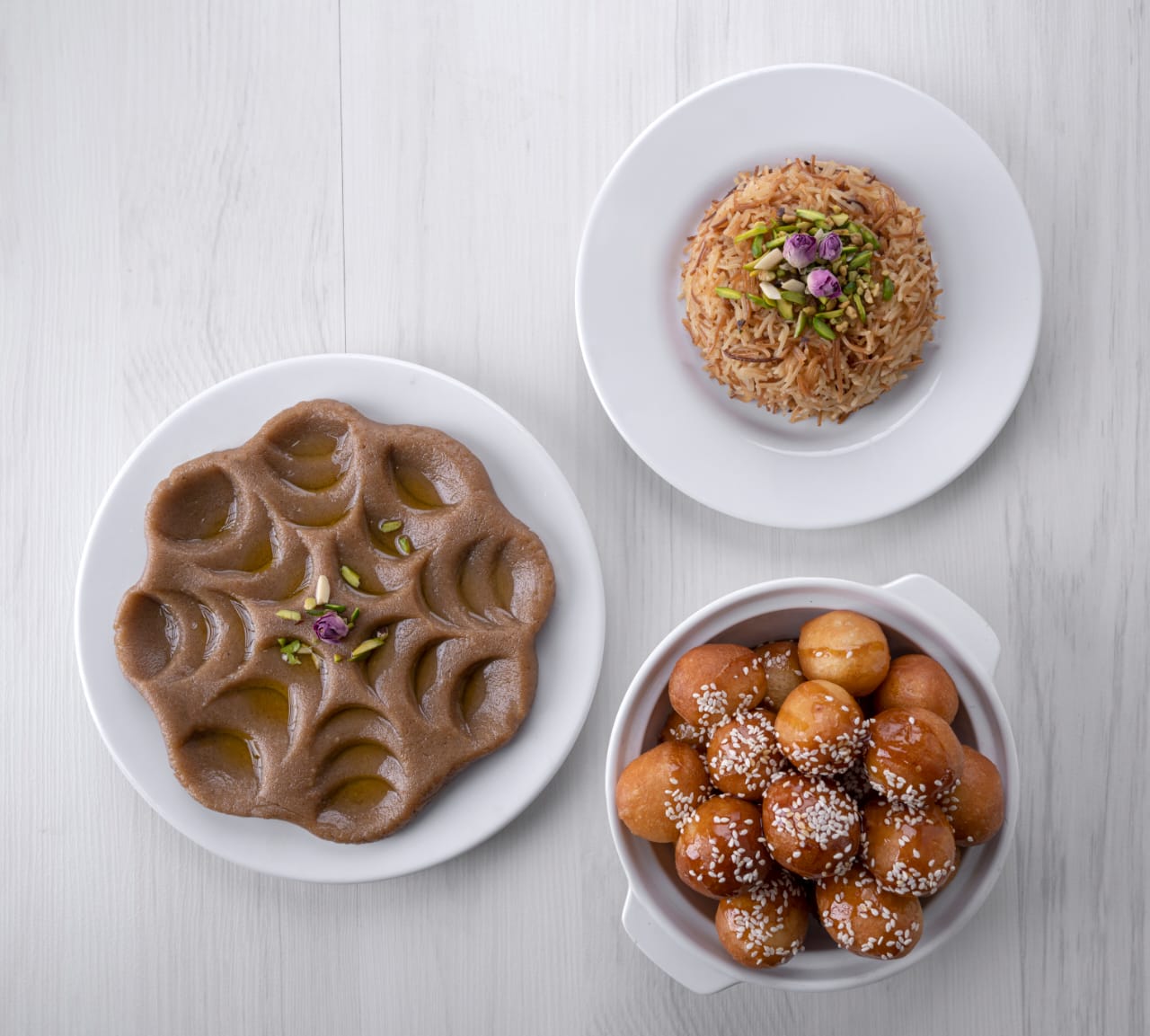 لقيمات بالدبس - عصيدة - بلاليط بالهيل والزعفران.