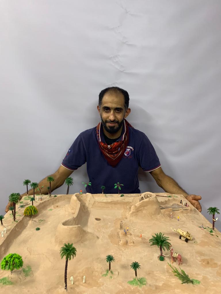 ولفت إلى استخدامه بعض المجسمات البشرية والحيوانات والأشجار لإضفاء جانب من الحياة على المجسم.
