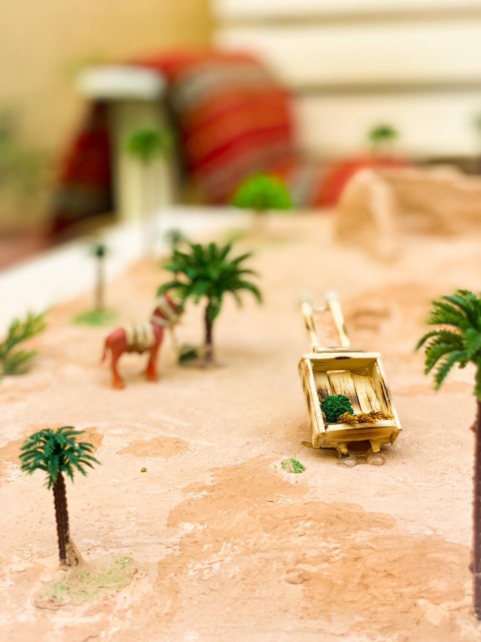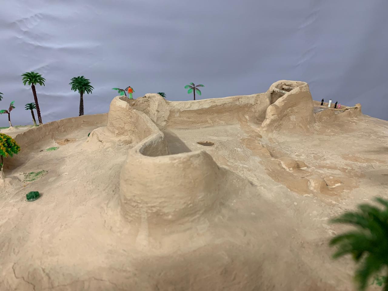وبين أبو السرير وهو من أهالي تاروت، بأنه استغرق إعداد حوالي أسبوعين في عمل المجسم، مستخدما الخشب والحجارة الصغيرة لتكوين قاعدة متماسكة ممسوحة بالطين.