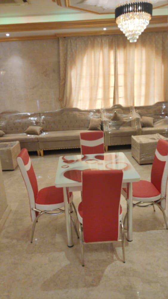 _ كل شقة تتكون من دورتين مياه وصالة ومطبخ. كمايوجد ميكرويف مع فرن مع ثلاجة كبيرة وغسالة خاصة بالشقه.