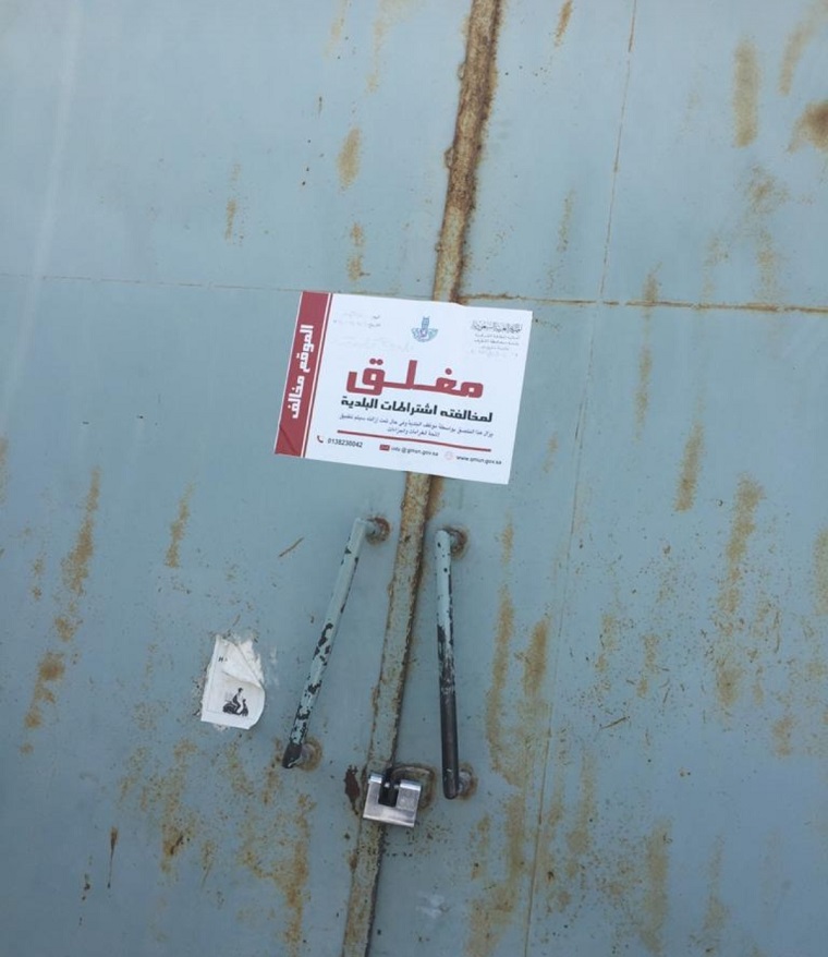 أغلقت بلدية محافظة القطيف ورشتين للحدادة والألمنيوم في التركية الصناعية بجزيرة تاروت لمخالفتهما للاشتراطات النظامية وممارسة النشاط خارج حدود العمل دون ترخيص.