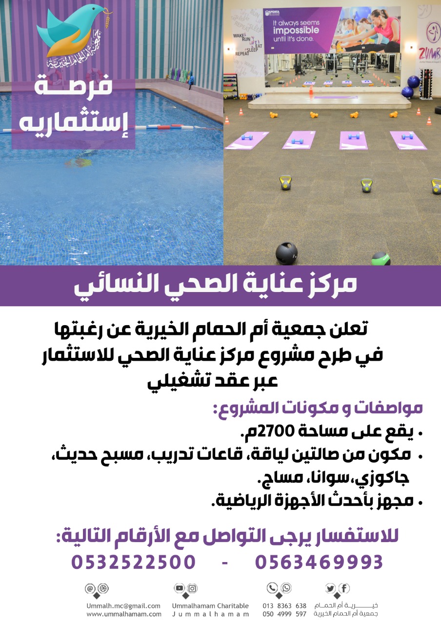 قال رئيس مجلس إدارة خيرية أم الحمام؛ حسين آل جبر بأنه قرر مجلس الإدارة طرح حزمة من المشاريع والمنشآت التابعة للجمعية للاستثمار العام وإتاحة الفرصة للمستثمرين الجادين من أجل تحقيق ديمومة مالية ثابته وتنمية إقتصادية وتحقيق الأهداف التي من أجلها أنشئت هذه المشاريع.