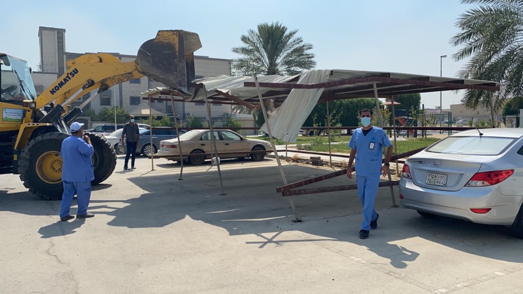 وذكرت بلدية القطيف في حسابها تويتر أنها تواصل جهودها في إزالة المظلات العشوائية والمخالفة داخل الأحياء وفي المواقع العامة. وذلك ضمن حملة إزالة التشوه البصري.