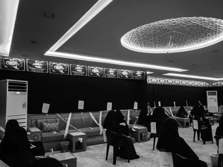 وجسدت السيهاتي ابنة بلدة سنابس الإجراءات الاحترازية في إحدى الحسينيات، ومنها اشتراط تسجيل ”المعزية“ عبر الرابط الإلكتروني المخصص للحضور.