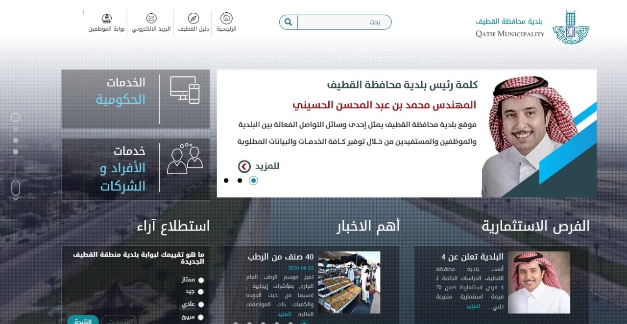 دشنت بلدية محافظة القطيف اليوم الاثنين، البوابة الإلكترونية الجديدة التي تهدف إلى تعزيز رضا المستفيد وتقديم الخدمات الإلكترونية الخاصة بالأفراد والمنشآت وبوابة بلدي.