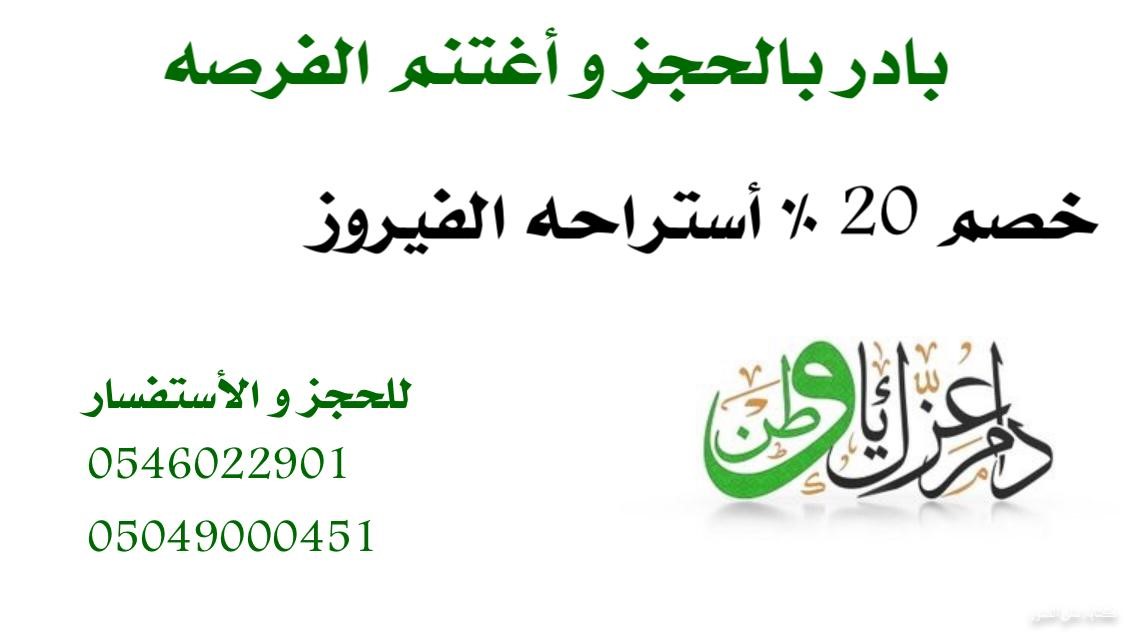 منتجع الفيروز العائلي يقدم لكم خصم خاص على الاستراحة بمناسبة اليوم الوطني