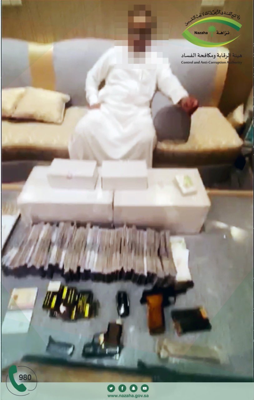 وبعد التأكد من صحة المعلومات، استصدرت الأوامر اللازمة من وحدة التحقيق والادعاء الجنائي للقبض عليهم وتفتيش منازلهم، حيث عُثر على مبالغ نقدية بلغ إجماليها «45,960,900» خمسة وأربعين مليوناً وتسع مئة وستين ألفاً وتسع مئة ريال، و«360,000» ثلاث مئة وستين ألفاً لعملات أجنبية مختلفة، وما قيمته «2,500,000» مليونان وخمس مئة ألف ريال بطاقات «مسبقة الدفع» للتسوق من أحد المتاجر الغذائية، وما قيمته «149,225» مئة وتسعة وأربعون ألفاً ومائتان وخمسة وعشرون ريالاً بطاقات وقود «مسبقة الدفع»، وعدد «5» سبائك ذهب، وعدد «6» قطع سلاح «مسدس»، وثبت من خلال إجراءات التحقيق الآتي: