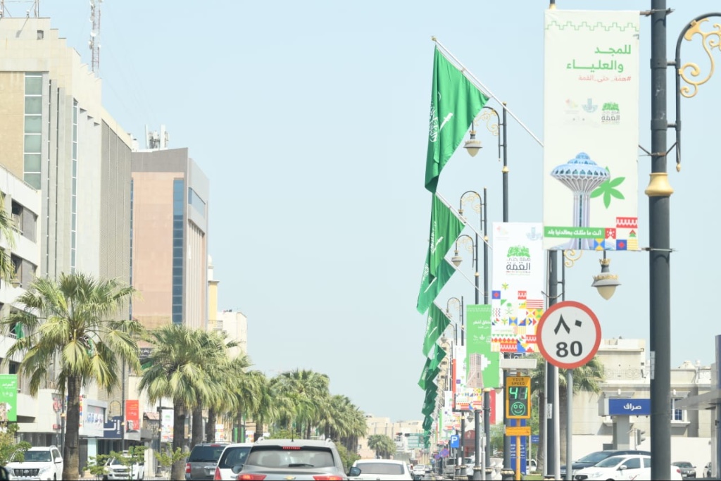 وقامت الأمانة بوضع خطة متكاملة، تتضمن التجهيزات والاستعدادات، من خلال قيام الإدارة العامة للكهرباء والإنارة بوكالة التعمير والمشاريع، بأعمال الزينة الخاصة باليوم الوطني، والتي تضمنت تركيب 5500 علم المملكة بالمقاس الكبير على أعمدة الإنارة، كذلك تركيب أعلام بالمقاس الكبير أيضا على أكثر من 100 سارية بالتقاطعات الواقعة على طريق الملك فهد ودوار سيهات.