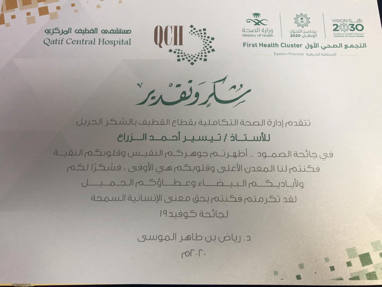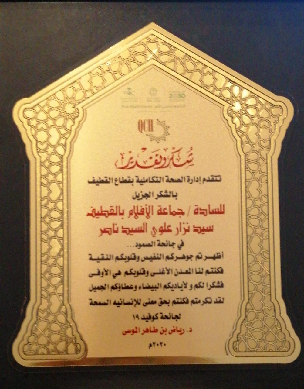 كرمت رئيسة الرعاية الصحية النموذجية بقطاع القطيف الدكتورةلمياء عبد الوهاب بو حليقه 12 شخصية من مبدعي وإعلاميي ومصوري المنطقة نظير تعاونهم خلال جائحة كورونا.