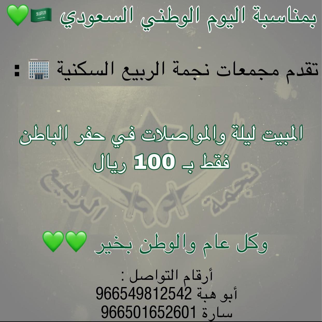 - بمناسبة اليوم الوطني السعودي المواصلات الداخلية والمبيت ليلة في مجمعات نجمة الربيع السكنية بـ 100 ريال فقط