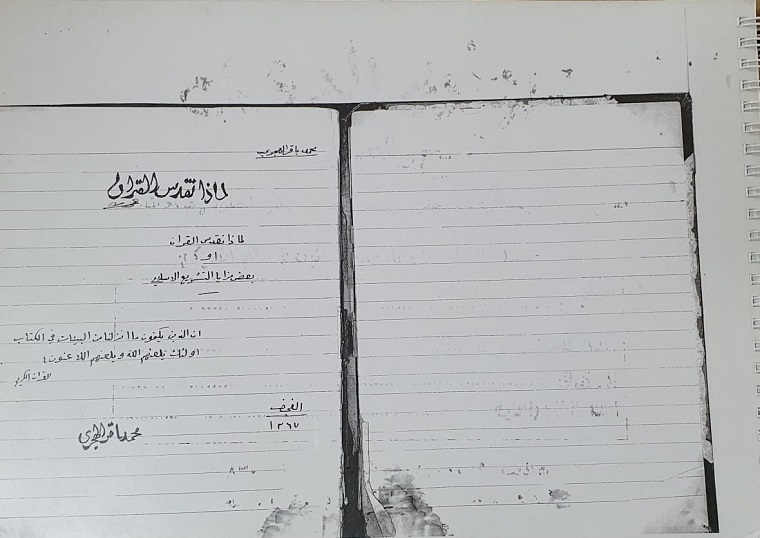 لقد آلمني كثيرا أن أرى مخطوطات العلامة الشيخ باقر حبيسة الأدراج وفيها من المعلومات ما يفيد المجتمع في كل ميدان، سيما صفوة كتبه لماذا نقدس القرآن. مما حدا بي أن اطلب من المهندس رياض وسماحة العلامة الشيخ حسن بأن يتكرموا عليَّ بأن أعمل على تحقيقه بعد التوفيق في تحقيق كشكوله الهجري. لم يكن الأمر سهلا عليهما إذ أنا لست متخصصا في هذا الميدان ولكن لكل مجتهد نصيب ولا بد لهذا الكتاب أن يرى النور وإلا سيبقى حبيس الأدراج كما هي معظم مخطوطاته اليوم أو تكون عرضة للسرقة كما حدث لبعض المخطوطات أو الاستعارة والنسخ فتذهب رونقها.