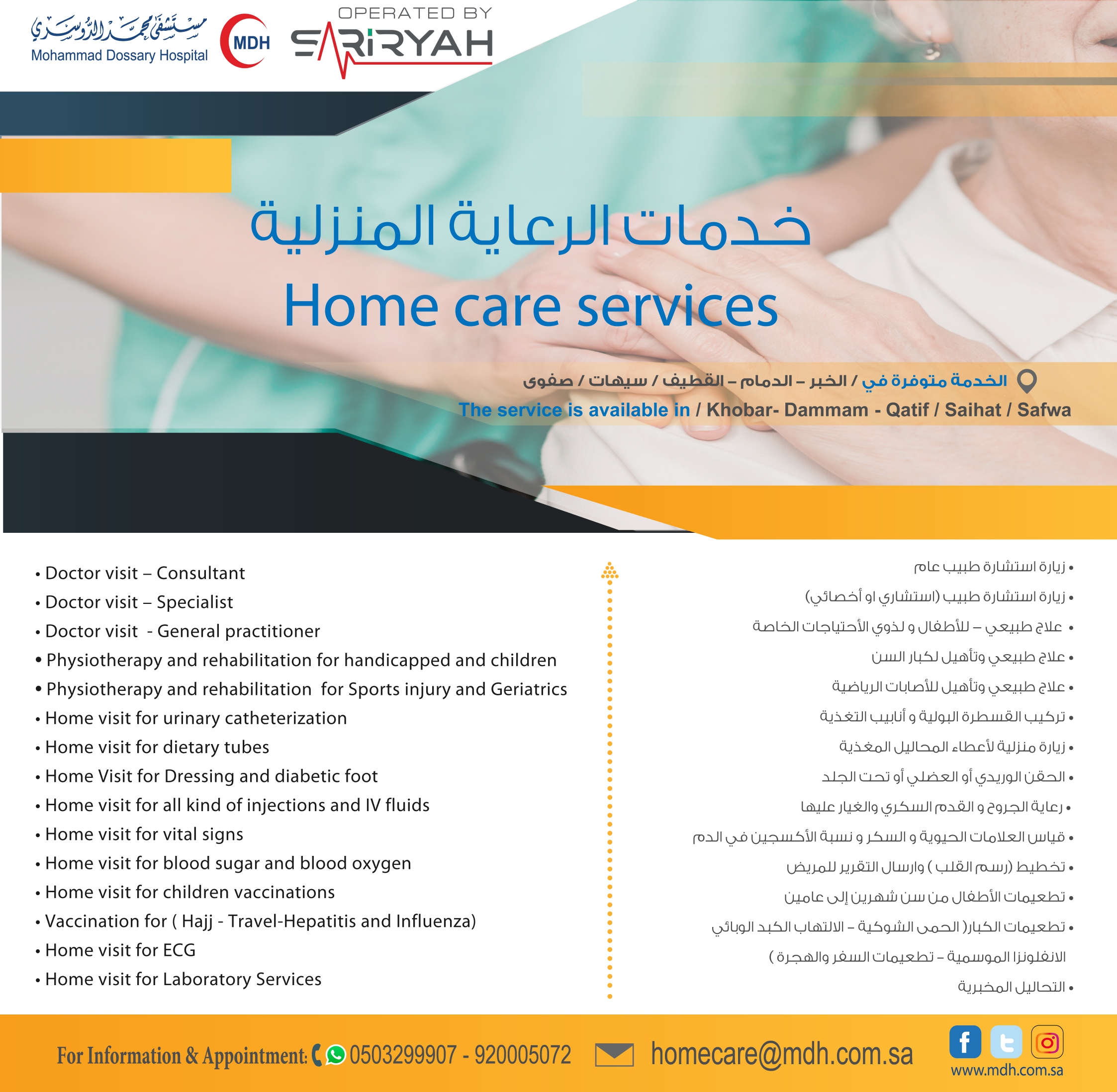 مستشفى محمد الدوسري يقدم خدمات الرعاية المنزلية في القطيف وسيهات وصفوى
