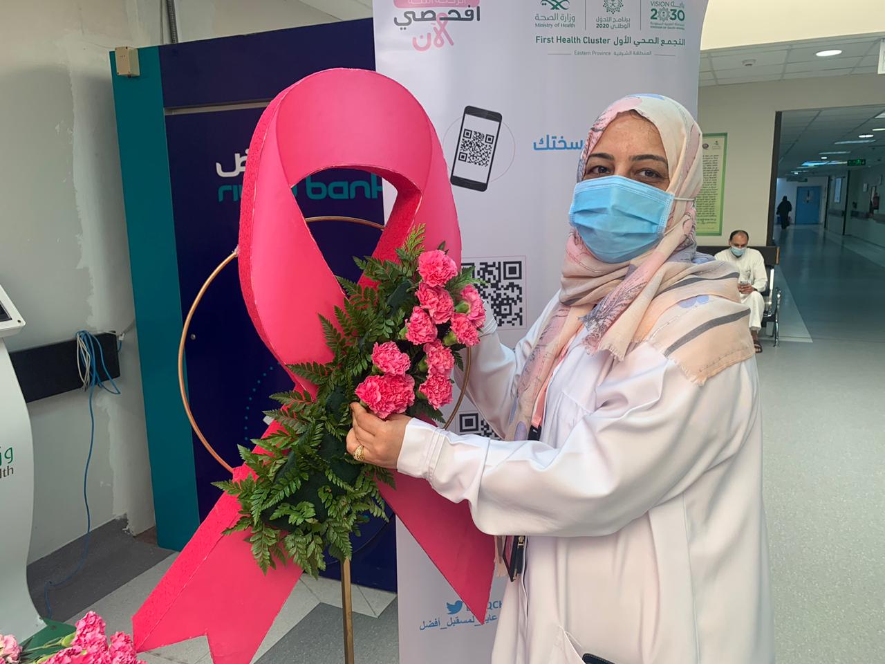 جاء ذلك في الفعالية التي أقيمت بمستشفى القطيف المركزي اليوم الثلاثاء بمشاركة الرعاية الصحية النموذجية بقطاع القطيف بعنوان «افحصي الآن - الرحلة آمنة» للتوعية بأهمية الكشف المبكر لسرطان الثدي.