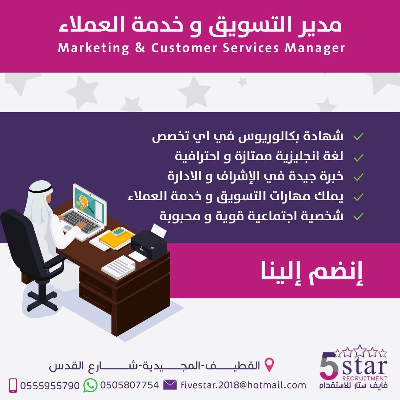 - مدير تسويق وخدمة عملاء