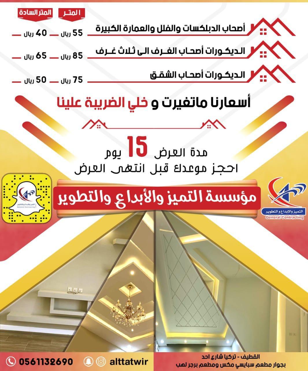 الديكورات أصحاب الشقق المتر 75 ريال - المتر السادة 50 ريال