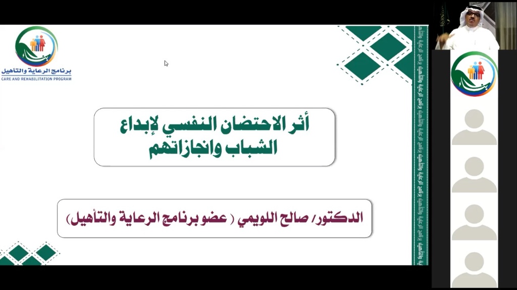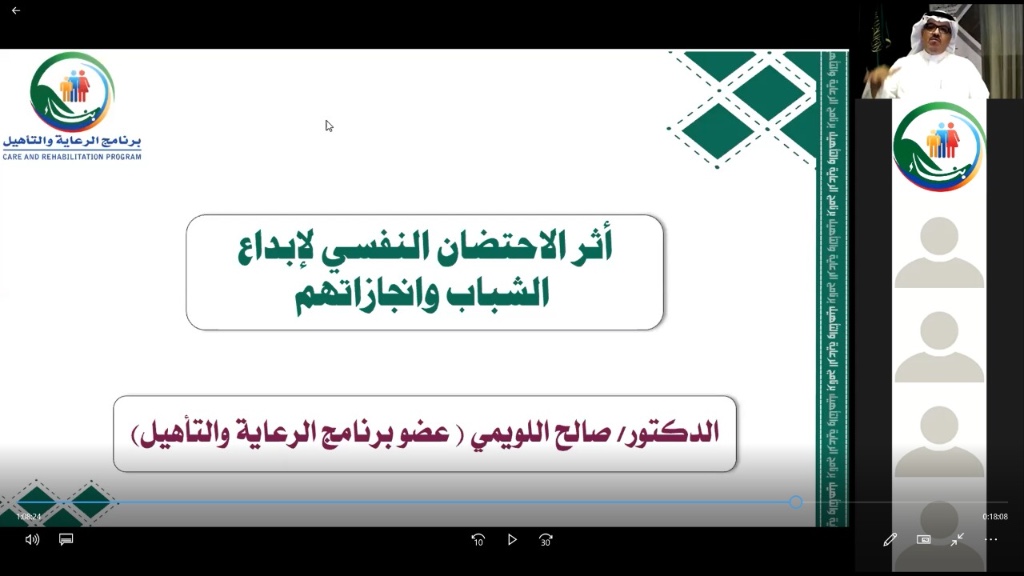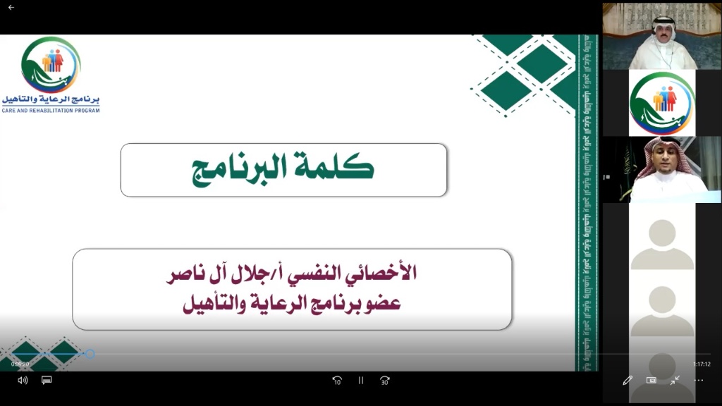 كما احتوت الأمسية على فيديو توثيقي لبعض انجازات برنامج الرعاية والتأهيل وقد شكر البرنامج جميع المشاركين والقائمين على هذه الامسية ومن حضرها عبر منصة الزوم.