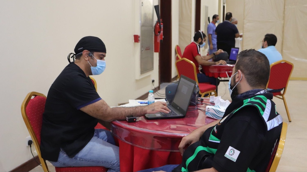 وتضمنت اركان الحملة فحص ضغط الدم وقياس الهيموجلوبين وقياس الحرارة وركن تسليم الشهادات والمركز الاعلامي