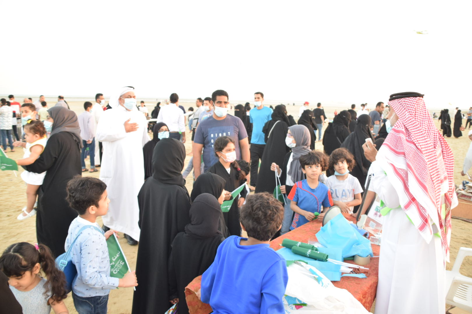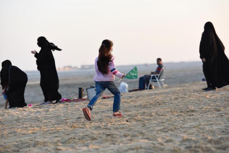 وتجمع الأهالي على ‎شاطئ الرملة البيضاء، بجزيرة تاروت الذين حملوا إعلامهم الخضراء لمشاهدة الفعاليات المختلفة والمتنوعة.