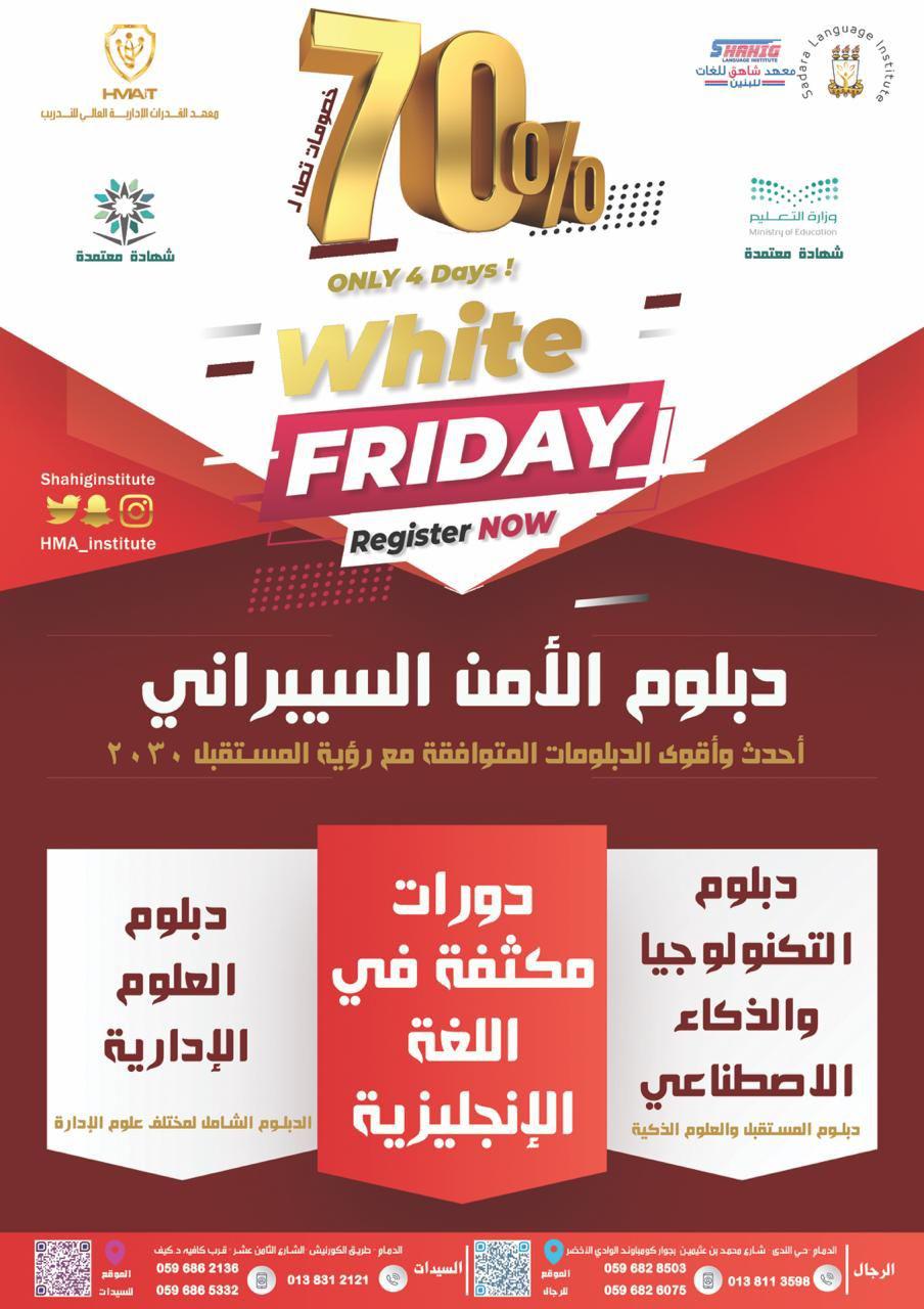 عروض الجمعة البيضاء خصومات حصرية تصل لـ70%على أقوى الدبلومات وبرامج اللغة الإنجليزية