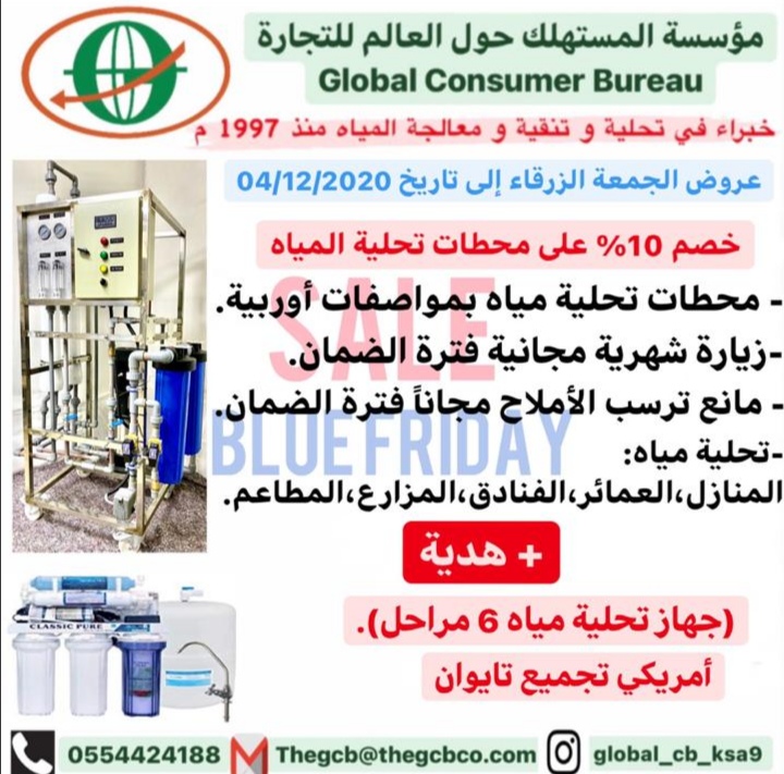 عروض الجمعة الزرقاء على محطات تحلية المياه لدى مؤسسة المستهلك حول العالم..
