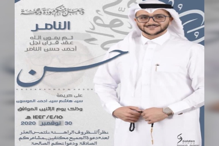 احتفلت عائلة الناصر والموسوي في سيهات بعقد قران الشاب حسن أحمد الناصر على كريمة السيد هاشم السيد أحمد الموسوي، وسط فرحة الأهل والأصدقاء ومحبي العريسين.