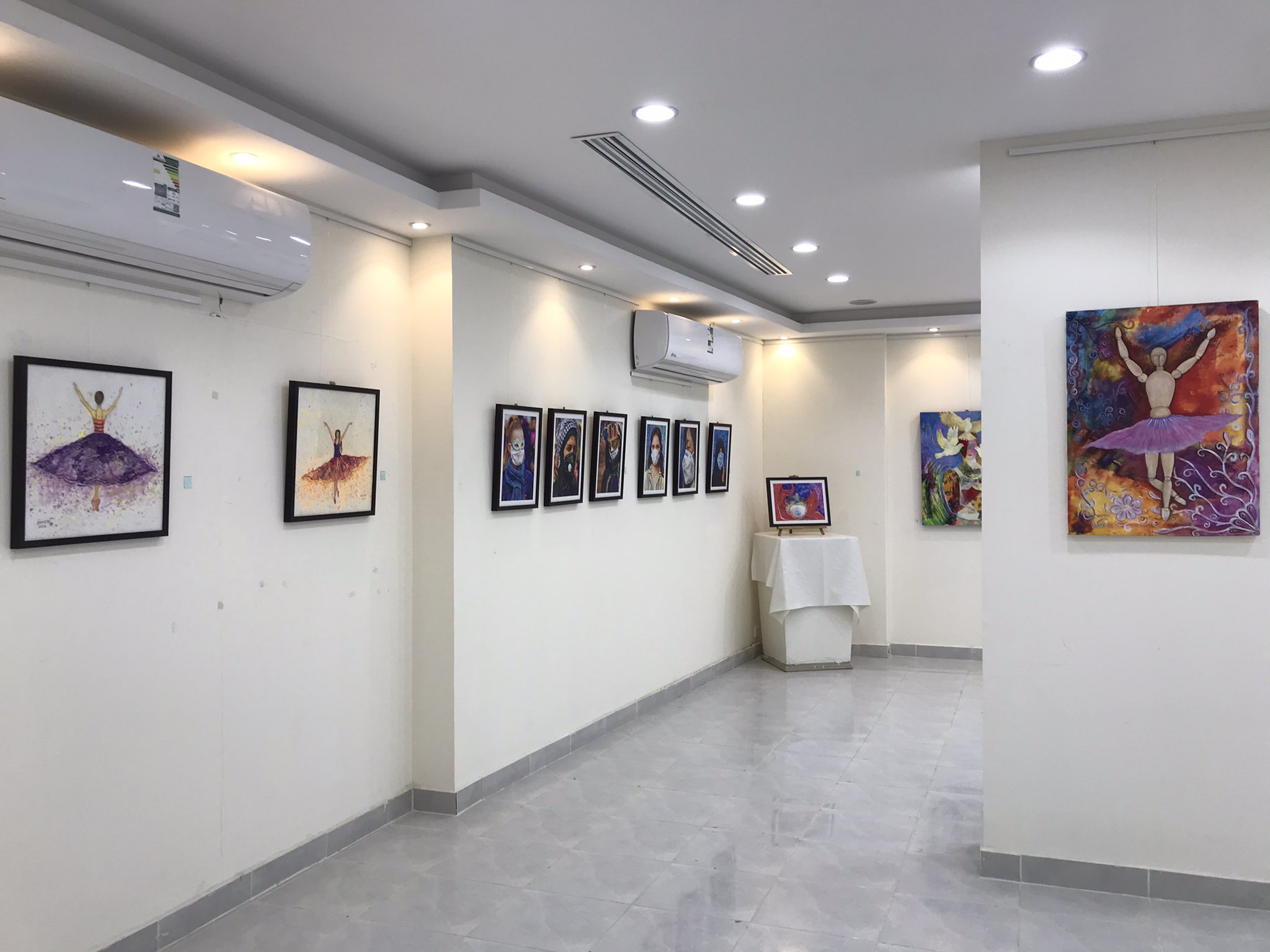 وكان اليوم الثاني حديث في التجربة الفنية، تحدث فيها عن البدايات وحتى حكاية المعرض، واليوم الثاني المشاركة للجميع في لوحة المحبة والسلام، شارك فيها العديد من الفنانين والجمهور في رسم المحبة والسلام.