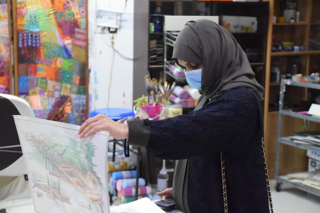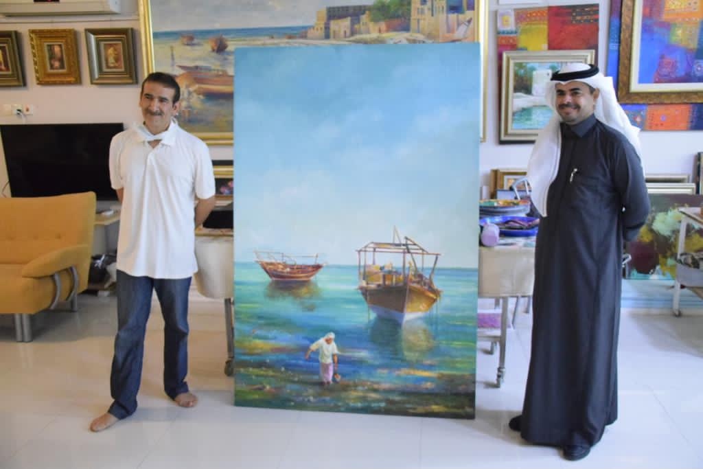 تضمنت الزيارة عرض أعمال متنوعة من مختلف السنوات، حيث يعد الحجي من المبدعين في مجال الرسم.