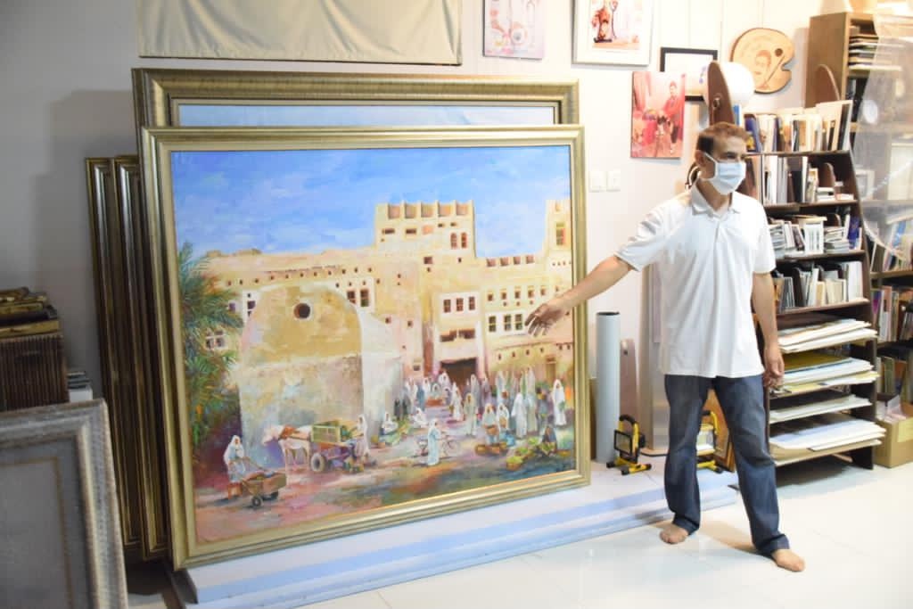 إبراز دور الثقافة.. الحربي يستعرض أعمال التشكيلي الحجي الفنية