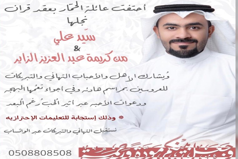 لنشر أخبار الأفراح والمواليد والمناسبات الإجتماعية في محافظة القطيف؛ يرجى التواصل عبر: