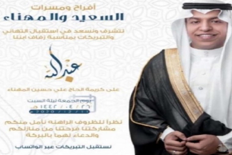 اسرة ”جهينة الإخبارية“ تهنئ العريسين وعائلتيهما وتسأل الله ان يبارك لهما، متمنين لهما حياة سعيدة.