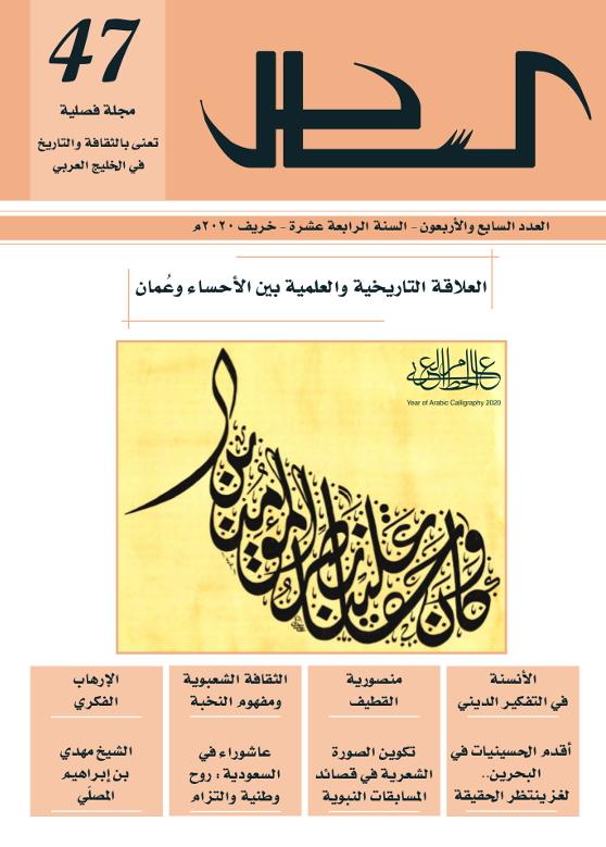 صدر حديثًا العدد السابع والأربعون من مجلّة الساحل «السنة الرابعة عشرة - خريف 2020م»، واحتوى على عدد من المقالات التي تناولت تاريخ المنطقة الشرقية وتراثها خصوصًا، وشؤون الخليج العربي وشجونه وتراثه عمومًا، وتصدّرت الغلاف لوحة خطّية من إبداع الفنّان «السيد عدنان محمد مهدي آل درويش» احتفاءً بعام الخط العربي كما أعلنته وزارة الثقافة.