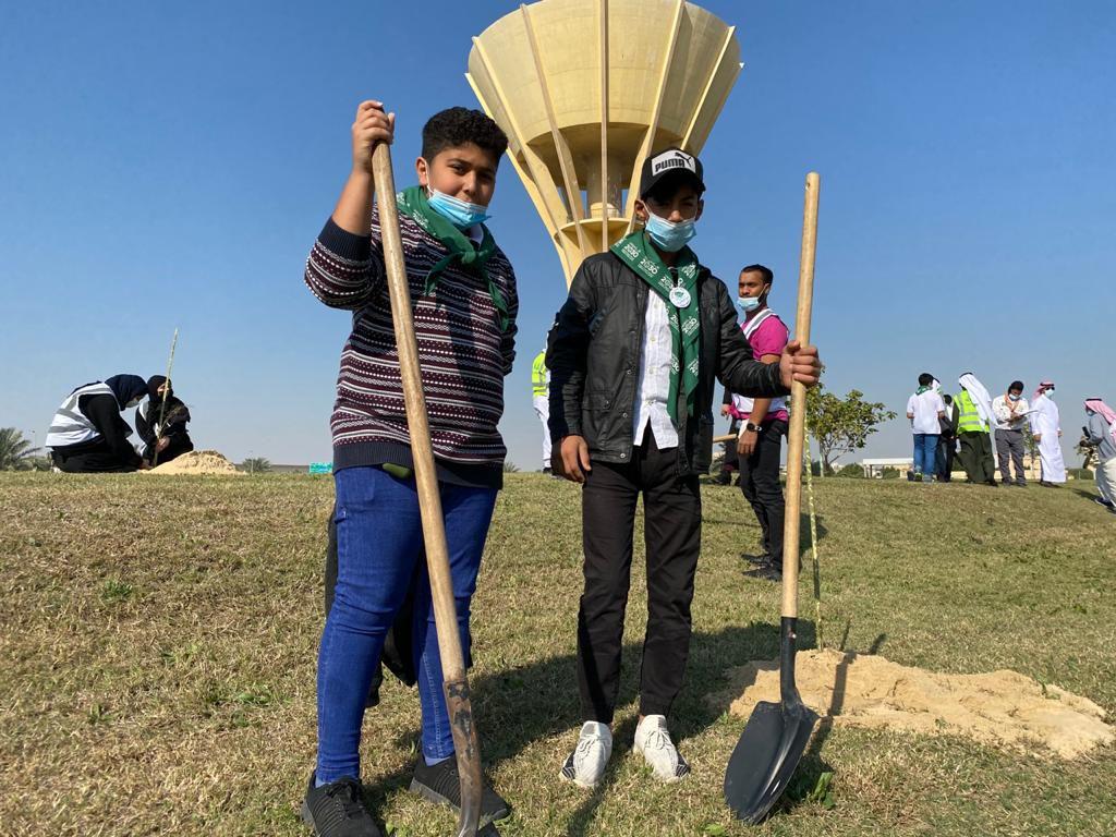 شارك 44 متطوعا في مبادرة قطيفنا خضراء ضمن برامج الشراكة المجتمعية وإدارة الحدائق والتشجير بالتعاون مع فريق كيان الخير وكشافة رسل السلام، بزراعة 500 شجرة بمثلث الخزان تقاطع شارع الملك فيصل و شارع الرياض بالقطيف.