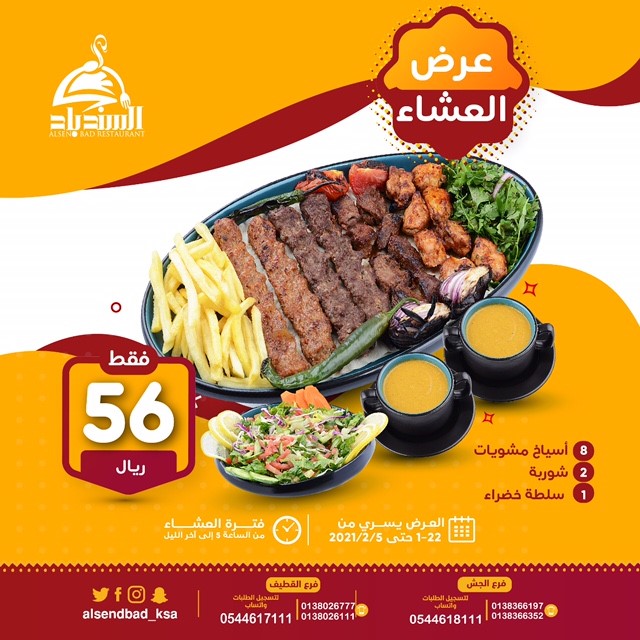 مطعم ومطبخ السندباد دائما الأفضل وبأسعار مناسبة للجميع..