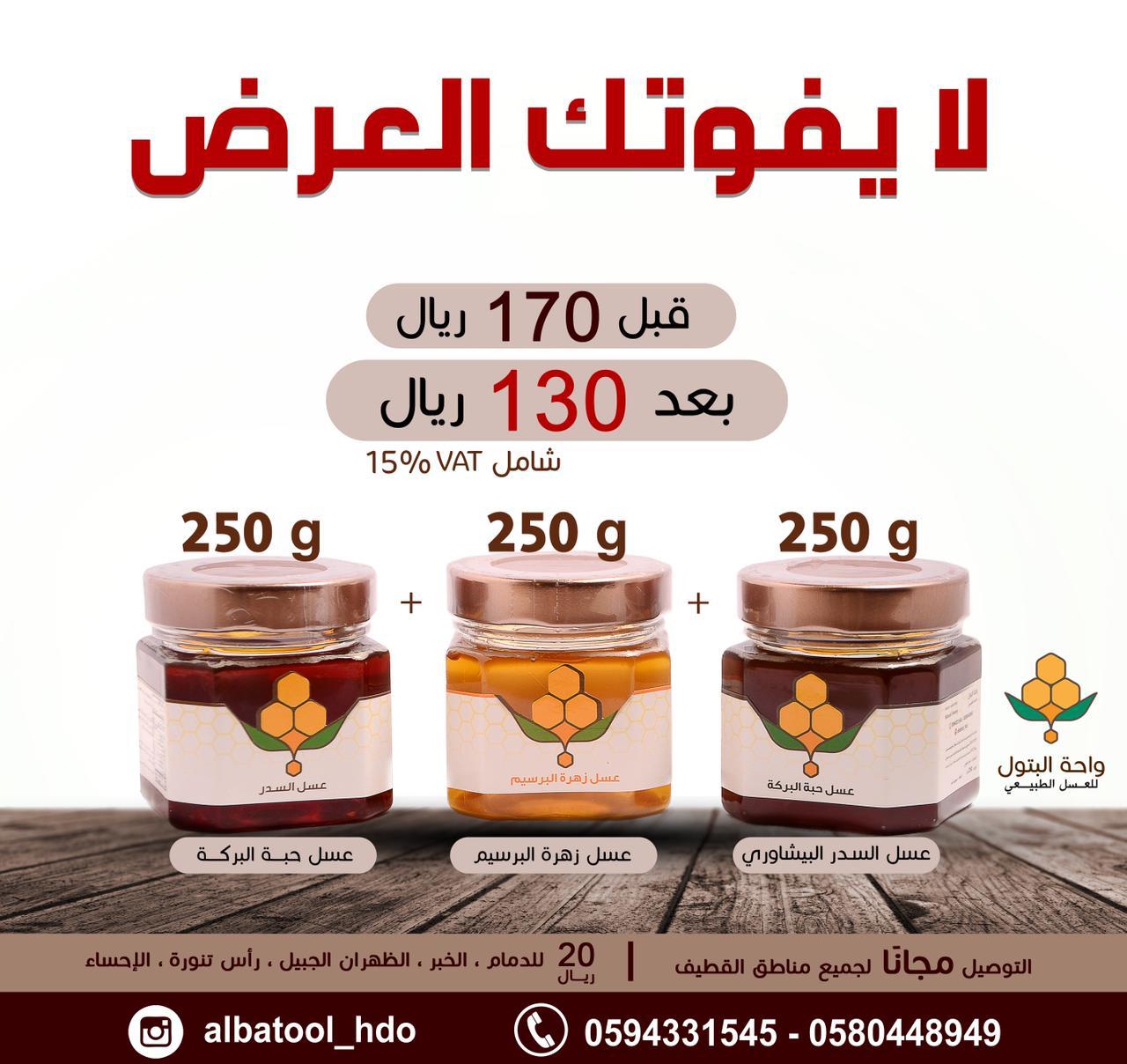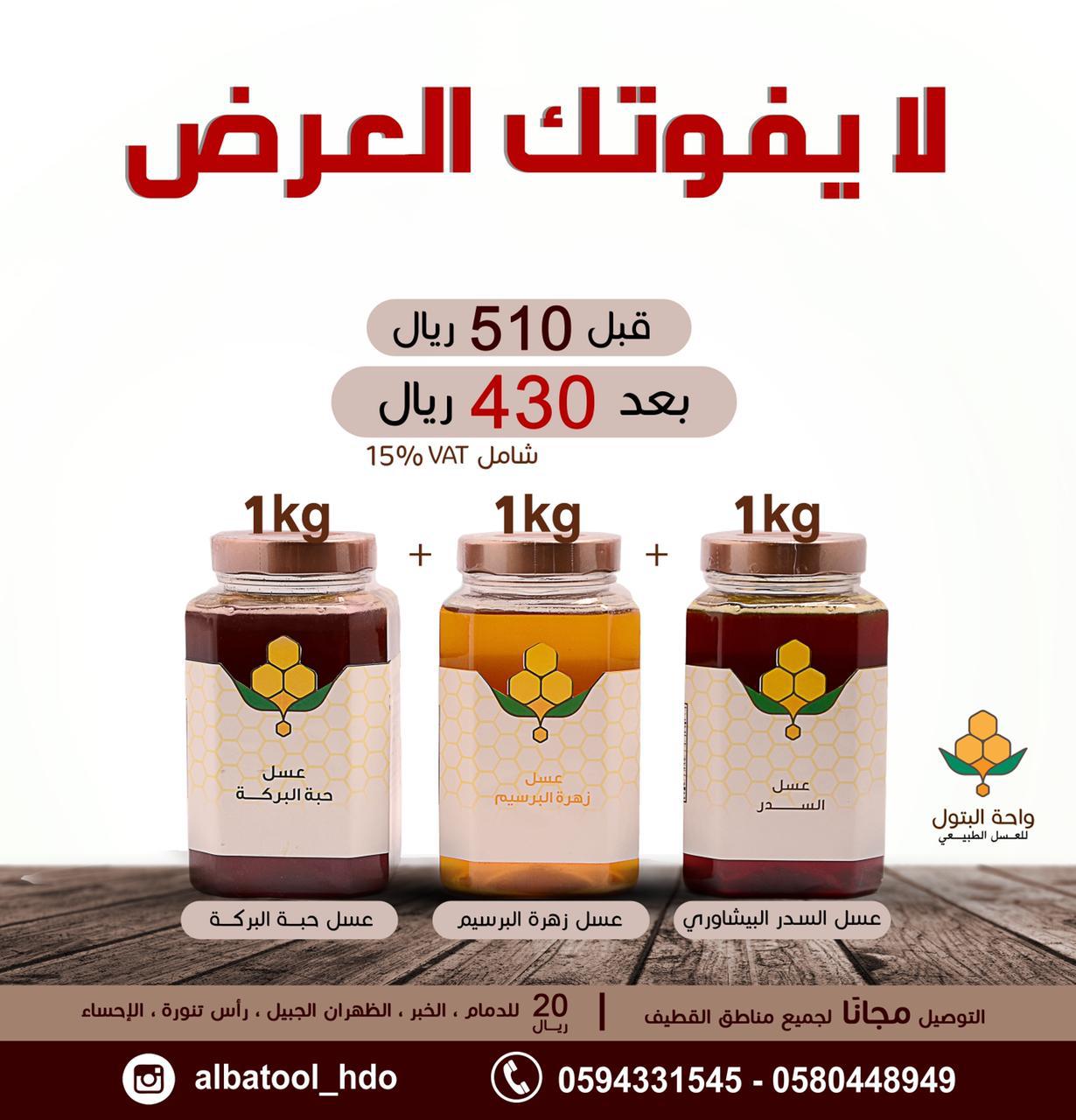 "مؤسسة واحة البتول للعسل والأغذية الصحية" متخصصون في العسل الطبيعي «المحلي والمستورد» وكذلك التمور والأغذية العضوية....