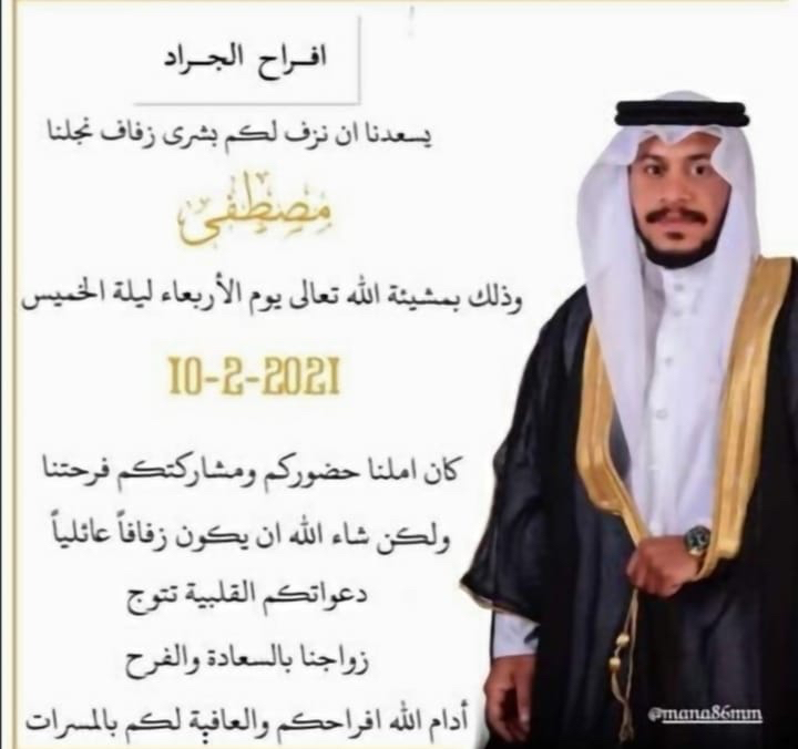 تحتفل عائلة الجراد في سيهات مساء يوم الأربعاء بزفاف الشاب مصطفى الجراد وسط فرحة الأهل والأصدقاء ومحبي العريسين.