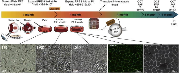 لإصلاح هذه المجموعة من الخلايا، استخرج الباحثون خلايا جذعية من عيون بالغين متوفين متبرع بها، والتي يمكن أن تكون ملائمة للمتبرع له وأن تكون بمثابة مصدر متكرر لانتاج الظهارة الصبغية للشبكية البشرية. بعد ذلك قيّم الفريق البحثي سلامة وجدوى زرع الخلايا الجذعية الشبكية المأخوذة من بالغين متوفين في الثديات غير البشرية.