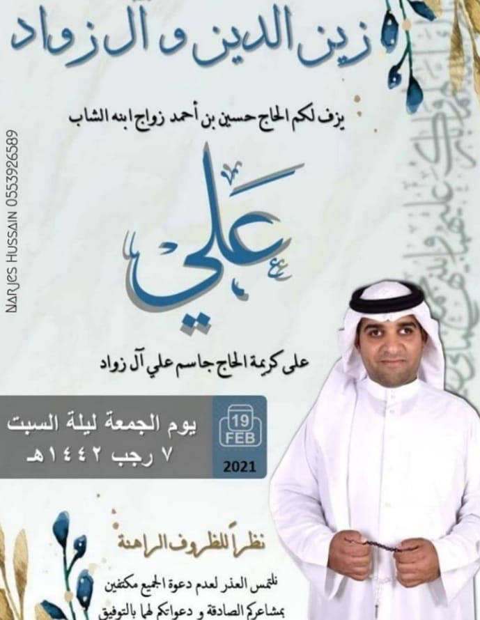 احتفلت عائلة زين الدين وآل زواد في سيهات مساء يوم الجمعة بزفاف الشاب علي زين الدين على كريمة الحاج جاسم علي آل زواد وسط فرحة الأهل والأصدقاء ومحبي العريسين.