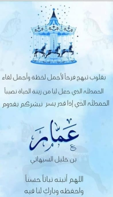 رُزق الشاب خليل ابراهيم السيهاتي بمولود اتفق وحرمه على تسميته «عمار».