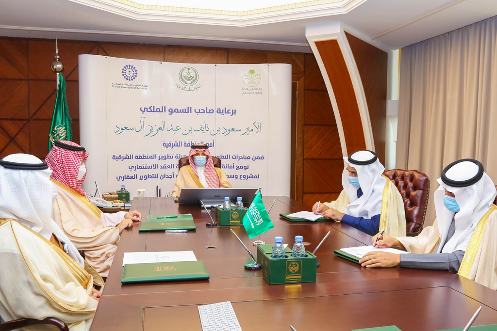 وقد تم توقيع العقد بين أمانة المنطقة الشرقية ومثلها معالي أمين المنطقة الشرقية المهندس فهد الجبير وشركة أجدان العقارية ومثلها رئيس مجلس إدارة شركة أجدان العقارية عبدالله الفوزان، وحضر اللقاء الرئيس التنفيذي لهيئة تطوير المنطقة الشرقية المهندس فهد المطلق ونائب رئيس مجلس إدارة شركة أجدان العقارية عصام المهيدب ووكيل الأمين للاستثمار وتنمية الإيرادات المهندس حمدان العرادي.
