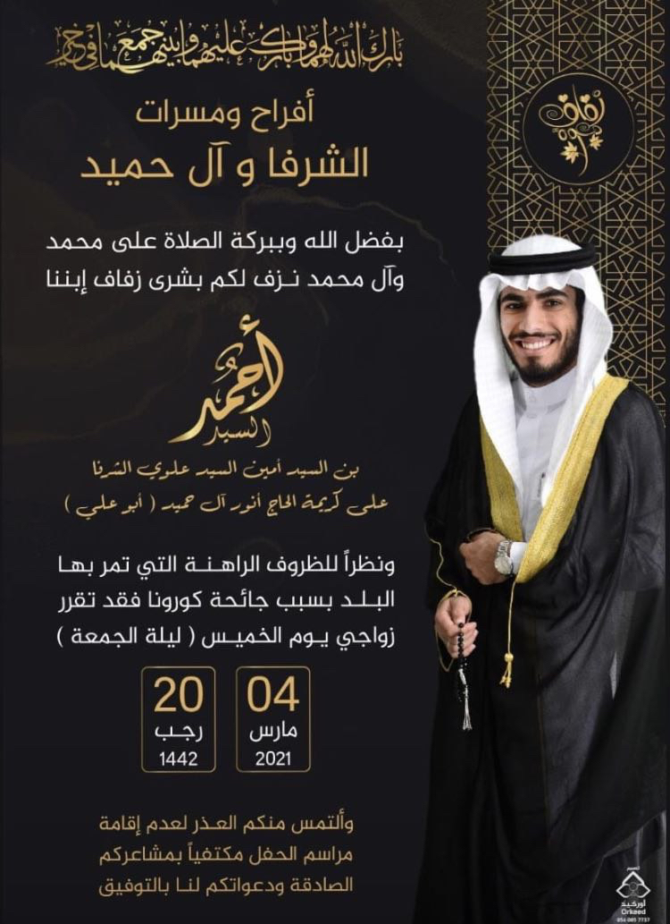 احتفلت عائلة الشرفاء وآل حميد في صفوى مساء يوم الخميس بزفاف الشاب السيد أحمد السيد أمين السبد علوي الشرفا على كريمة الحاج أنور آل حميد «أبو علي» وسط فرحة الأهل والأصدقاء ومحبي العريسين.